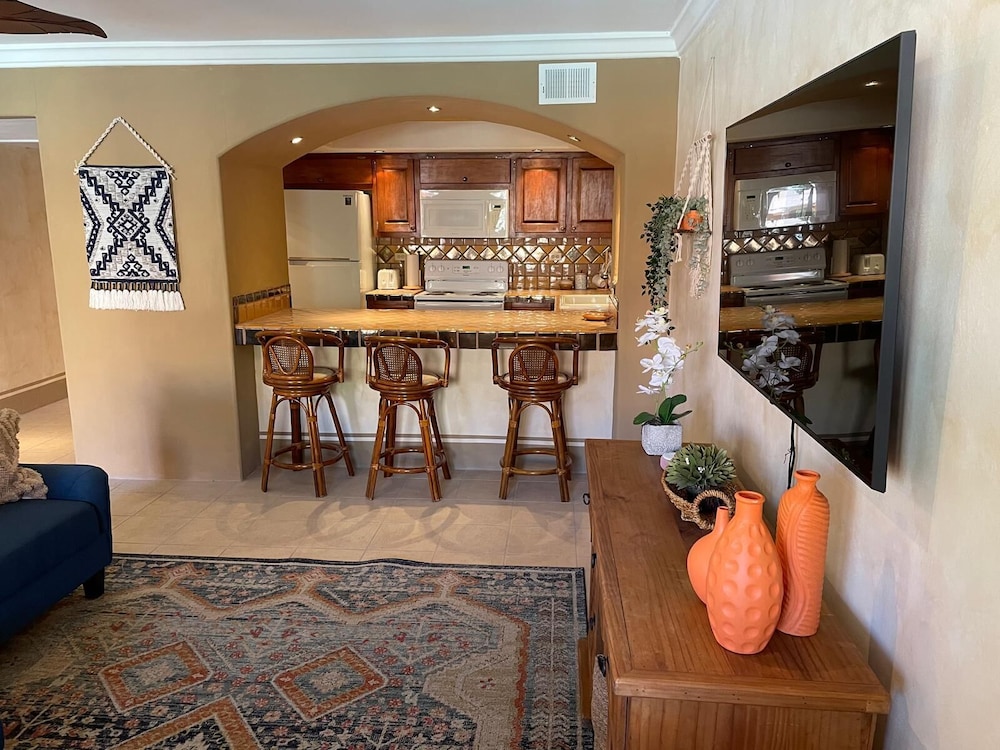 A stay at El Pueblo Condominiums by Rocky Host places you in the heart of Puerto Peñasco, within a 5-minute drive of Mirador Beach and La Madre Square. This apartment is 1.6 mi (2.6 km) from Plaza del Malecón and 1.6 mi (2.6 km) from Bonita Beach. Make yourself at home in one of the 3 individually decorated guestrooms, featuring kitchens with full-sized refrigerators/freezers and ovens. 55-inch flat-screen televisions with Netflix provide entertainment, while complimentary wireless internet access keeps you connected. Conveniences include microwaves and ceiling fans. Distances are displayed to the nearest 0.1 mile and kilometer.