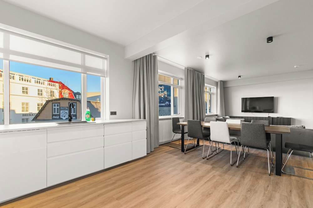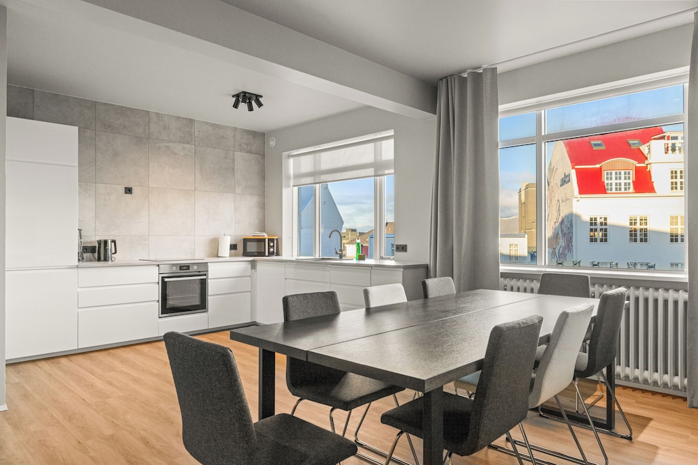 With a stay at Odinn Reykjavik Skolavordustigur Apartments, you'll be centrally located in Reykjavik, steps from Laugavegur and 10 minutes by foot from Reykjavik Harbour. This apartment is 0.3 mi (0.5 km) from Harpa and 1.3 mi (2.1 km) from University of Iceland. Make yourself at home in one of the 5 guestrooms, featuring kitchens with refrigerators and ovens. 65-inch flat-screen televisions with cable programming provide entertainment, while complimentary wireless internet access keeps you connected. Conveniences include microwaves and coffee/tea makers. Distances are displayed to the nearest 0.1 mile and kilometer.