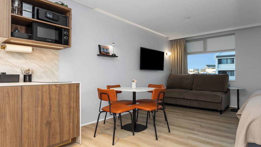 Candlewood Suites Reykjavik by IHG is centrally located in Reykjavik, a 1-minute walk from Laugavegur and 11 minutes by foot from Hallgrimskirkja. This aparthotel is 0.7 mi (1.1 km) from Sun Voyager and 1 mi (1.6 km) from Harpa. Make yourself at home in one of the 53 guestrooms, featuring kitchens with refrigerators and stovetops. 55-inch Smart televisions with satellite programming provide entertainment, while complimentary wireless internet access keeps you connected. Conveniences include safes and microwaves, and housekeeping is provided weekly. Distances are displayed to the nearest 0.1 mile and kilometer.