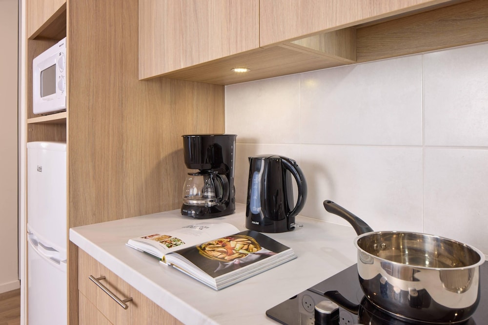 The 99 attractively furnished, non-smoking apartments on the site are all intended to give visitors a comfortable and easy stay. Each lodging has all the necessities for both leisure and business visits, including a full kitchenette, a large private bathroom with a shower, air conditioning, free high-speed Wi-Fi, a flatscreen TV, and a designated workspace.