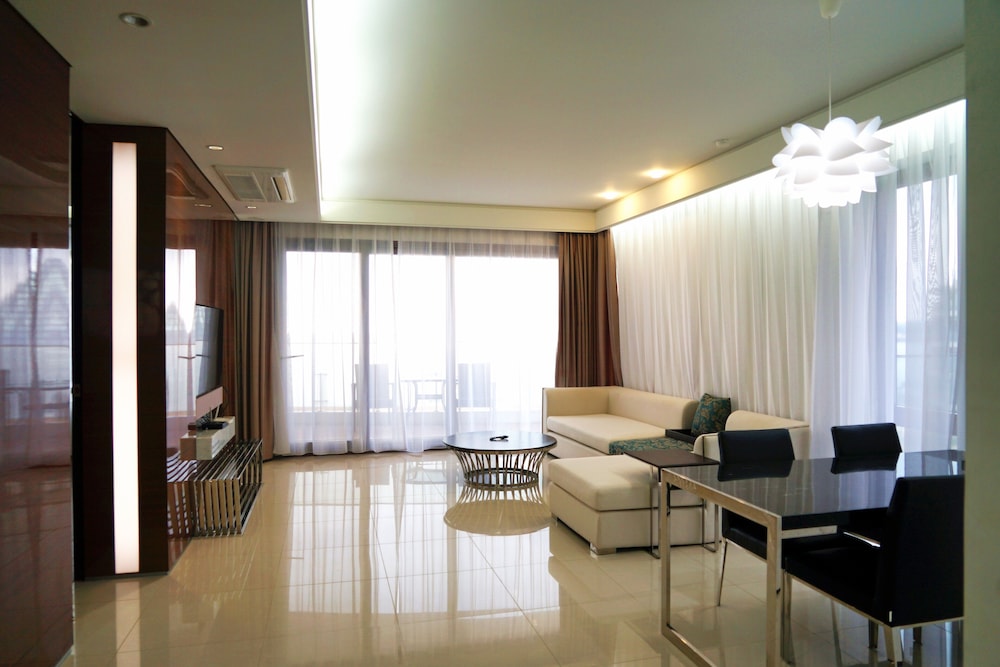 Featured amenities include a 24-hour front desk, luggage storage, and an elevator. Planning an event in Seogwipo? This condo has 2153 square feet (200 square meters) of space consisting of conference space and a meeting room. Free self parking is available onsite. Take advantage of recreation opportunities such as a 24-hour fitness center or take in the view from a terrace and a garden. Property class, provided by our rating system, is based on property type, amenities, and services.Map of Phoenix Island Ocean Star Resort
