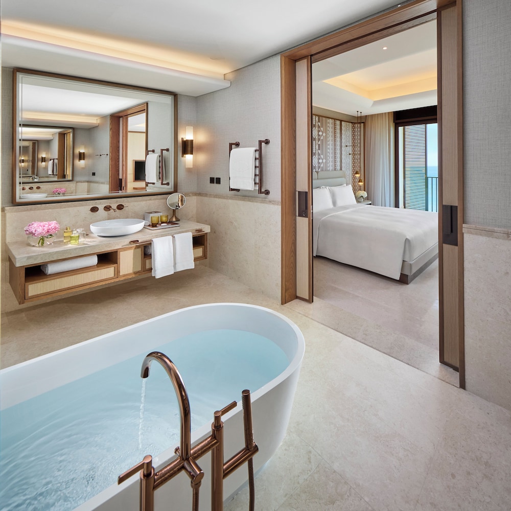 With a stay at Mandarin Oriental, Muscat in Muscat (Shati Al Qurum), you'll be within a 5-minute drive of Royal Opera House Muscat and Oman Children’s Museum. This beach hotel is 2 mi (3.3 km) from Qurum Beach and 2.2 mi (3.6 km) from Qurum Natural Park. Treat yourself to a stay in one of the 150 individually decorated guestrooms, featuring fireplaces and LED televisions. Your pillowtop bed comes with down comforters and Egyptian cotton sheets. Rooms have private furnished balconies. Complimentary wireless internet access keeps you connected, and digital programming is available for your entertainment. Private bathrooms with separate bathtubs and showers feature jetted bathtubs and rainfall showerheads. Distances are displayed to the nearest 0.1 mile and kilometer.