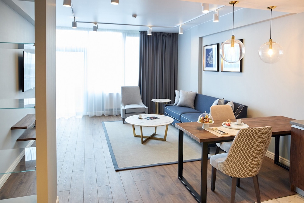 With a stay at Lahta Plaza in St. Petersburg (Municipal Okrug 65), you'll be within a 15-minute drive of Saint Petersburg's 300th Anniversary Park and St. Petersburg Botanical Garden. This spa hotel is 5.7 mi (9.1 km) from Kirov Apartment Museum and 5.8 mi (9.3 km) from Botanical Gardens. Make yourself at home in one of the 111 air-conditioned rooms featuring refrigerators and minibars. Rooms have private balconies. Complimentary wireless internet access is available to keep you connected. Bathrooms with shower/tub combinations feature deep soaking bathtubs and complimentary toiletries. Distances are displayed to the nearest 0.1 mile and kilometer.