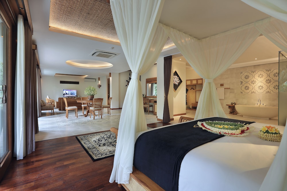 Featured amenities include a business center, dry cleaning/laundry services, and a 24-hour front desk. A roundtrip airport shuttle is provided for a surcharge (available 24 hours), and free self parking is available onsite. Treat yourself with massages, body treatments, and facials. If you're looking for recreational opportunities, you'll find an outdoor pool, a fitness center, and bicycles to rent. This hotel also features complimentary wireless internet access, concierge services, and babysitting (surcharge). Getting to nearby attractions is a breeze with the complimentary area shuttle. Satisfy your appetite for lunch or dinner at the hotel's restaurant, or stay in and take advantage of the room service (during limited hours). Relax with your favorite drink at the bar/lounge or the poolside bar. In accordance with local regulations, all visitors must remain within the property during Seclusion Day (Nyepi)/Hindu New Year for a 24-hour period (starting at 6 AM). Seclusion Day typically falls in March or April (dates subject to change each year). Check-in and check-out will not be possible on that date. Ngurah Rai Airport (Bali International Airport) is also closed on Seclusion Day.- Airport shuttle fee: IDR 600000.00 per vehicle (one-way, maximum occupancy 3)
