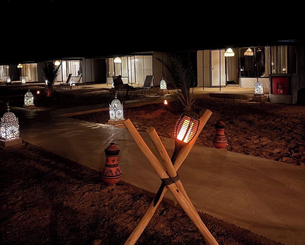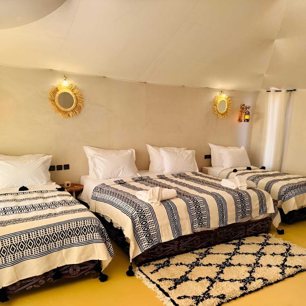 With a stay at Sunshine luxury desert camp in Taouz, you'll be steps from Erg Chebbi and a 4-minute drive from Lake Dayet Srij. This hotel is 3.5 mi (5.7 km) from Igrane Palm Grove and 5.5 mi (8.8 km) from Dar Gnaoua Bambara Khamlia Cultural Center. Make yourself at home in one of the 4 guestrooms. Complimentary wireless internet access keeps you connected, and smart speakers are provided for your entertainment. Conveniences include coffee/tea makers and day beds, and you can also request cribs/infant beds (complimentary). Distances are displayed to the nearest 0.1 mile and kilometer.