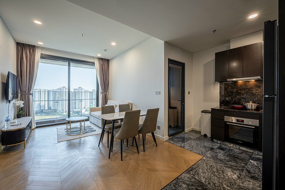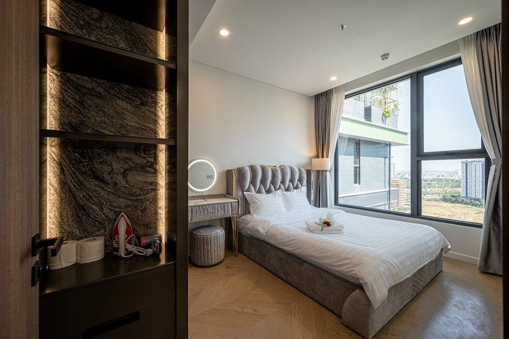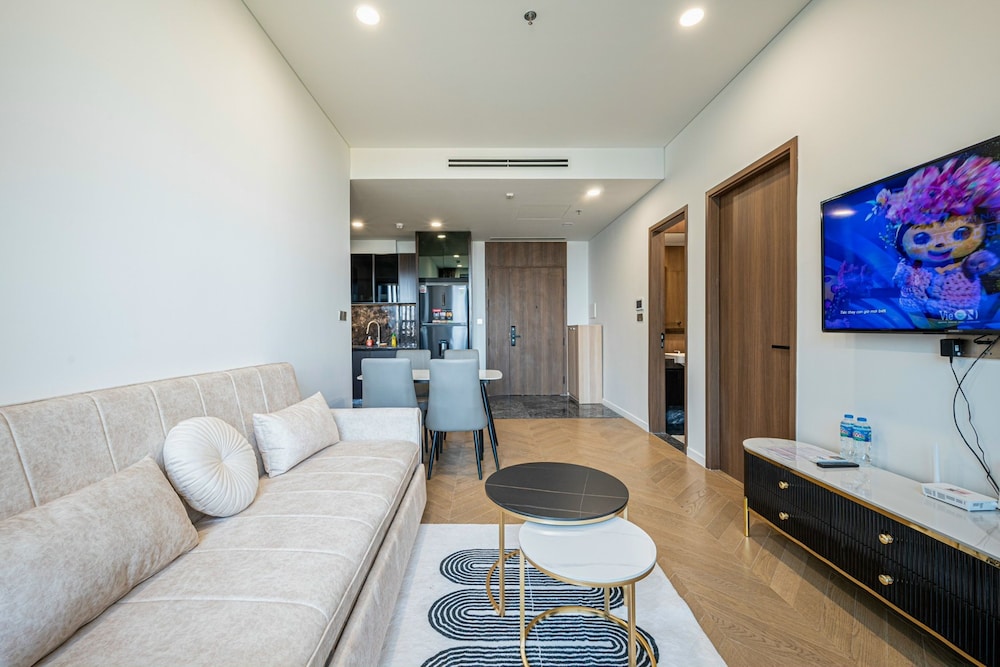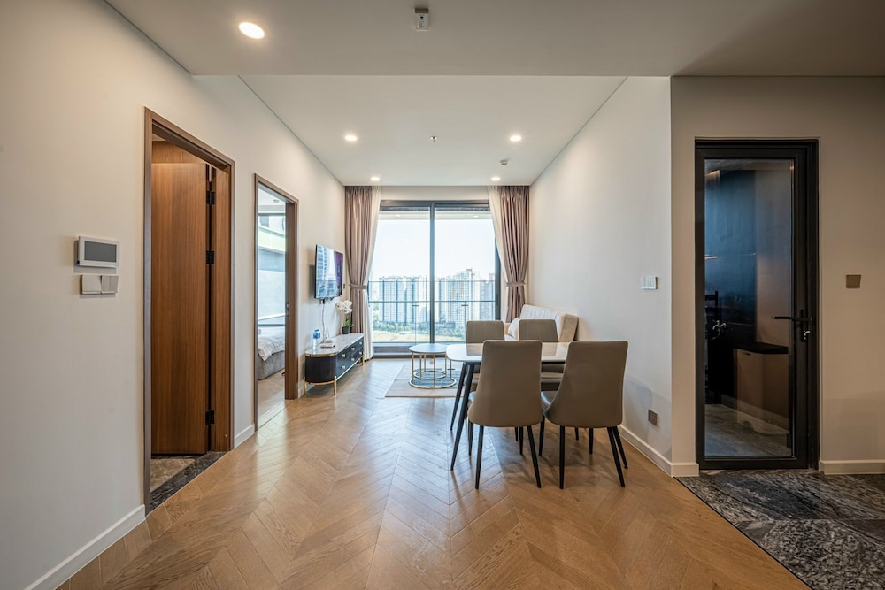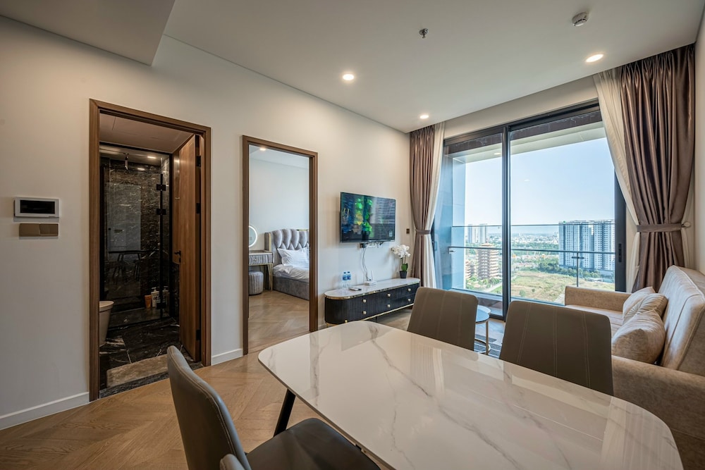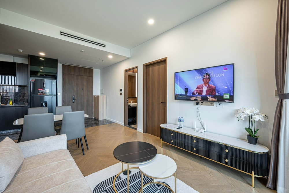 With a stay at Sarang Smile Luxstay Lumiere Riverside, you'll be centrally located in Ho Chi Minh City, within a 5-minute drive of Saigon River and Landmark 81. This golf hotel is 5.1 mi (8.2 km) from Ben Thanh Market and 5.9 mi (9.5 km) from Bui Vien Walking Street. Make yourself at home in one of the 50 individually decorated guestrooms, featuring kitchens with full-sized refrigerators/freezers and ovens. Your Select Comfort bed comes with down comforters and Egyptian cotton sheets. Rooms have private furnished balconies or patios. 65-inch Smart televisions with cable programming provide entertainment, while complimentary wireless internet access keeps you connected. Distances are displayed to the nearest 0.1 mile and kilometer.