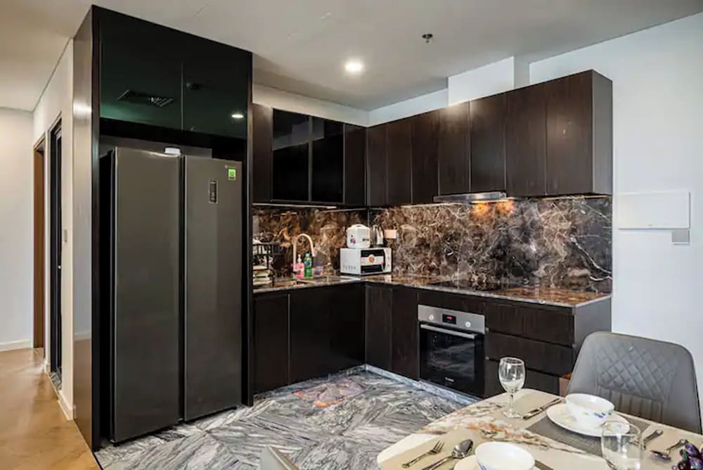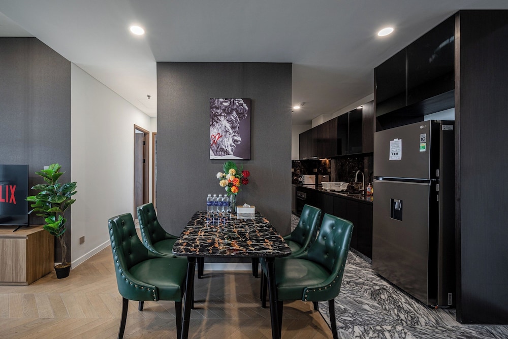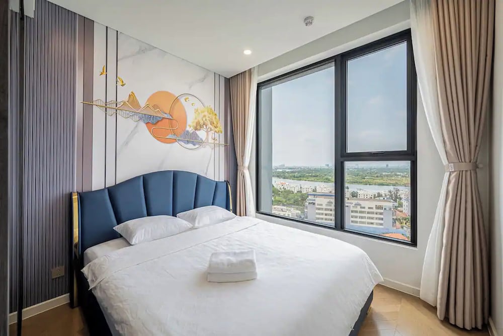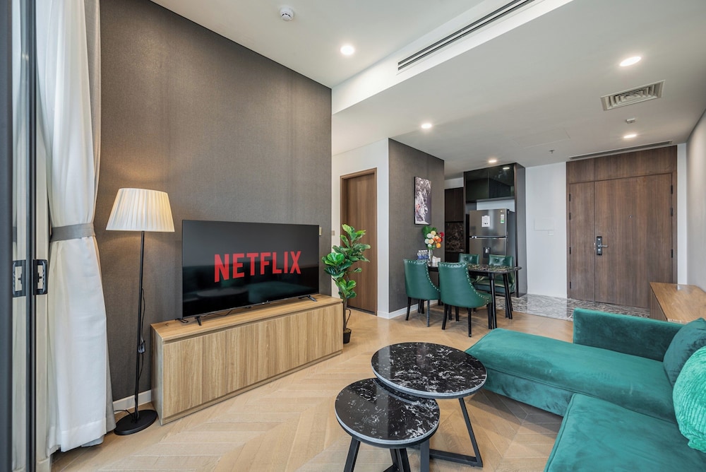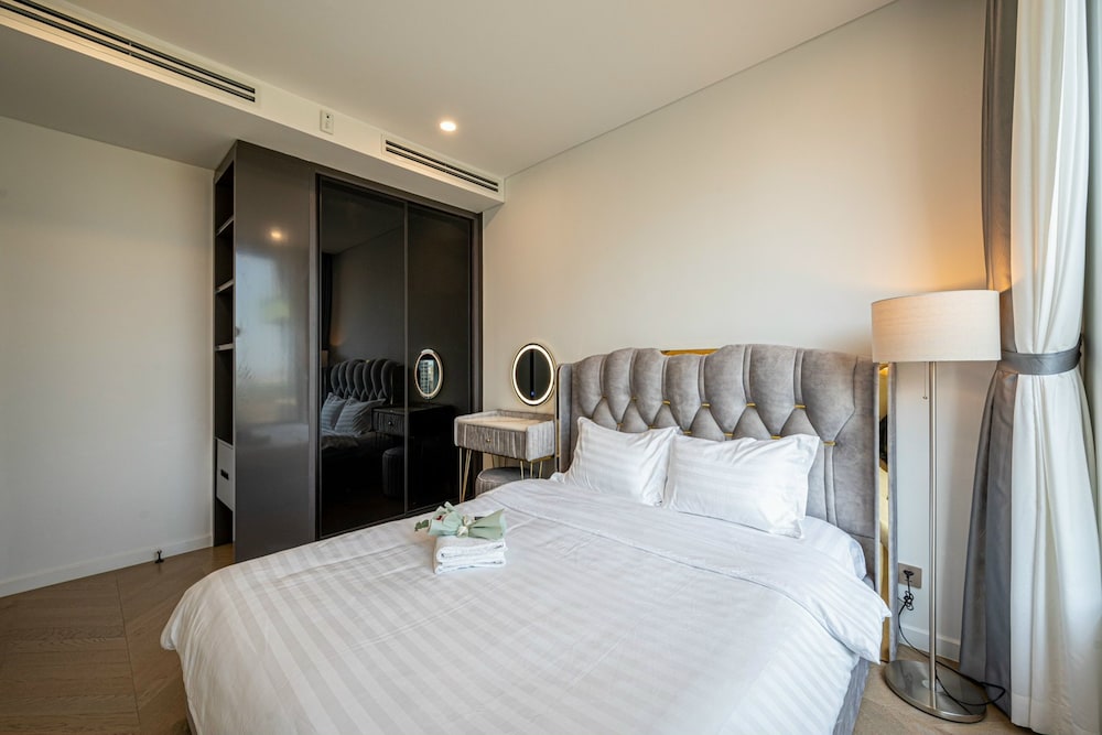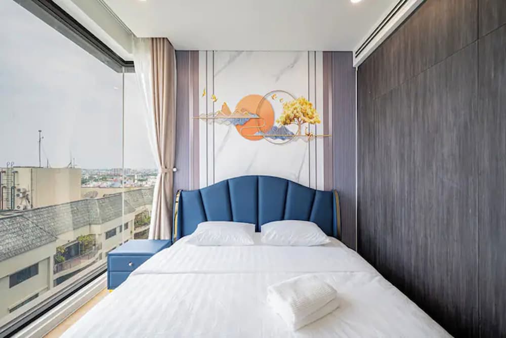 With a stay at Sarang Smile Luxstay Lumiere Riverside, you'll be centrally located in Ho Chi Minh City, within a 5-minute drive of Saigon River and Landmark 81. This golf hotel is 5.1 mi (8.2 km) from Ben Thanh Market and 5.9 mi (9.5 km) from Bui Vien Walking Street. Make yourself at home in one of the 50 individually decorated guestrooms, featuring kitchens with full-sized refrigerators/freezers and ovens. Your Select Comfort bed comes with down comforters and Egyptian cotton sheets. Rooms have private furnished balconies or patios. 65-inch Smart televisions with cable programming provide entertainment, while complimentary wireless internet access keeps you connected. Distances are displayed to the nearest 0.1 mile and kilometer.