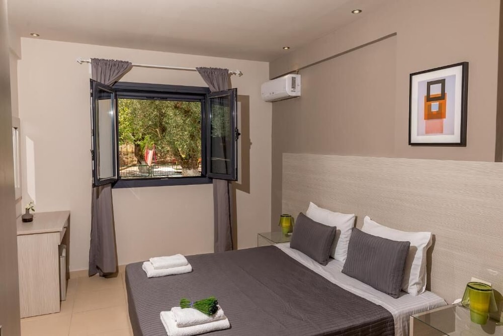 With a stay at Trianon Studios in Zakynthos, you'll be a 1-minute drive from Tsilivi Beach and 8 minutes from Zakynthos Ferry Terminal. This guesthouse is 7.4 mi (11.9 km) from Laganas Beach and 7.6 mi (12.3 km) from Alykanas Beach. Make yourself at home in one of the 16 air-conditioned rooms featuring kitchenettes with refrigerators and stovetops. Rooms have private balconies. Complimentary wireless internet access keeps you connected, and 14-inch flat-screen televisions are provided for your entertainment. Conveniences include desks and coffee/tea makers, and housekeeping is provided on weekdays only. Distances are displayed to the nearest 0.1 mile and kilometer.