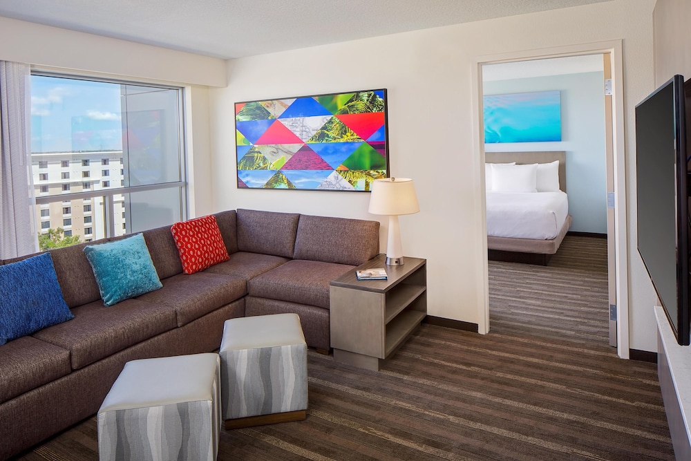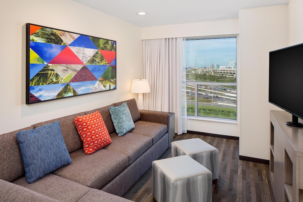 With a stay at Hyatt House across from Universal Orlando Resort in Orlando (Florida Center), you'll be within a 5-minute drive of Orlando International Premium Outlets and Universal Studios Florida. This hotel is 2.1 mi (3.4 km) from Mall at Millenia and 3.2 mi (5.1 km) from Universal’s Volcano Bay. Make yourself at home in one of the 150 air-conditioned rooms featuring refrigerators and flat-screen televisions. Complimentary wireless internet access is available to keep you connected. Bathrooms have designer toiletries and hair dryers. Conveniences include phones, as well as safes and microwaves. Distances are displayed to the nearest 0.1 mile and kilometer.