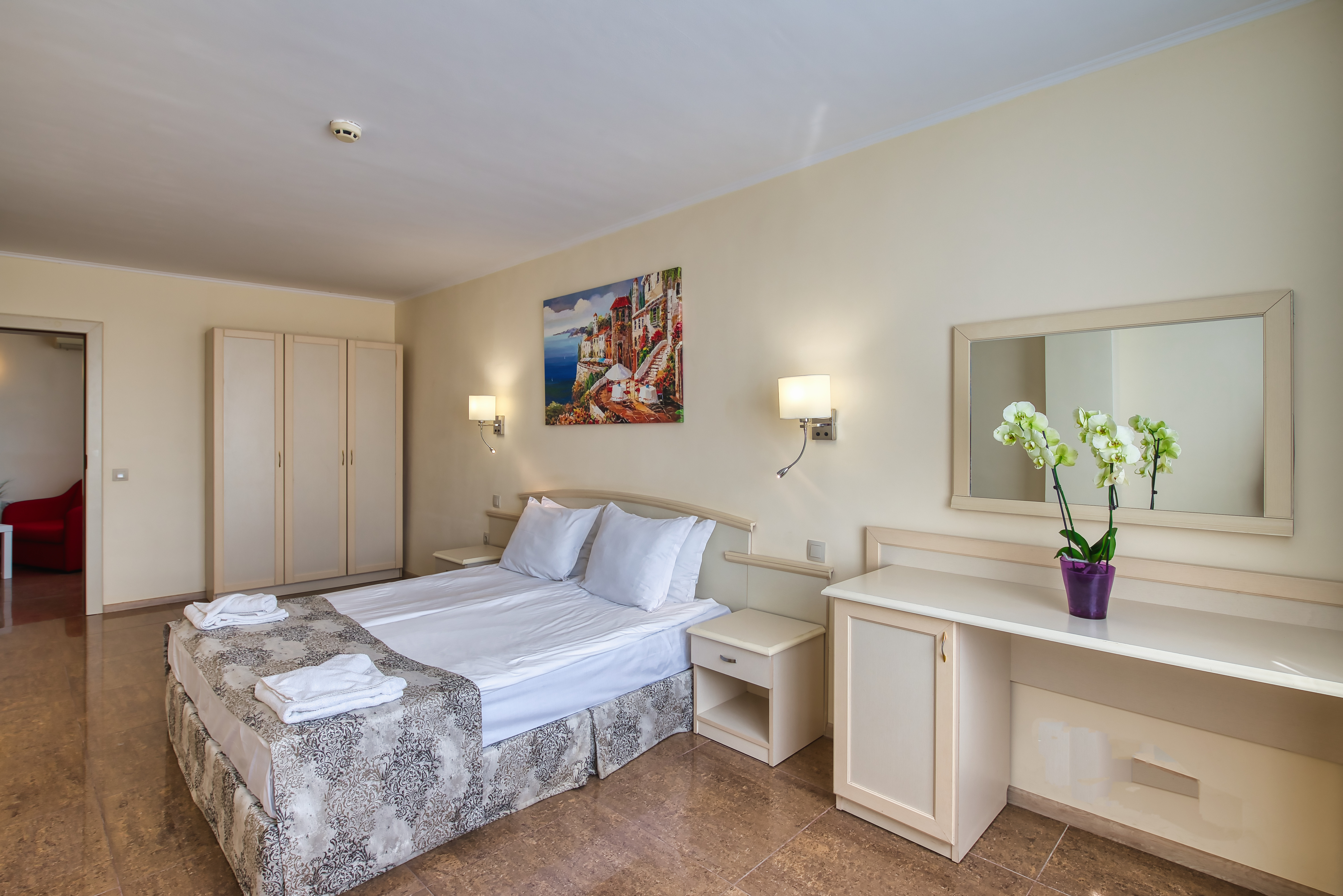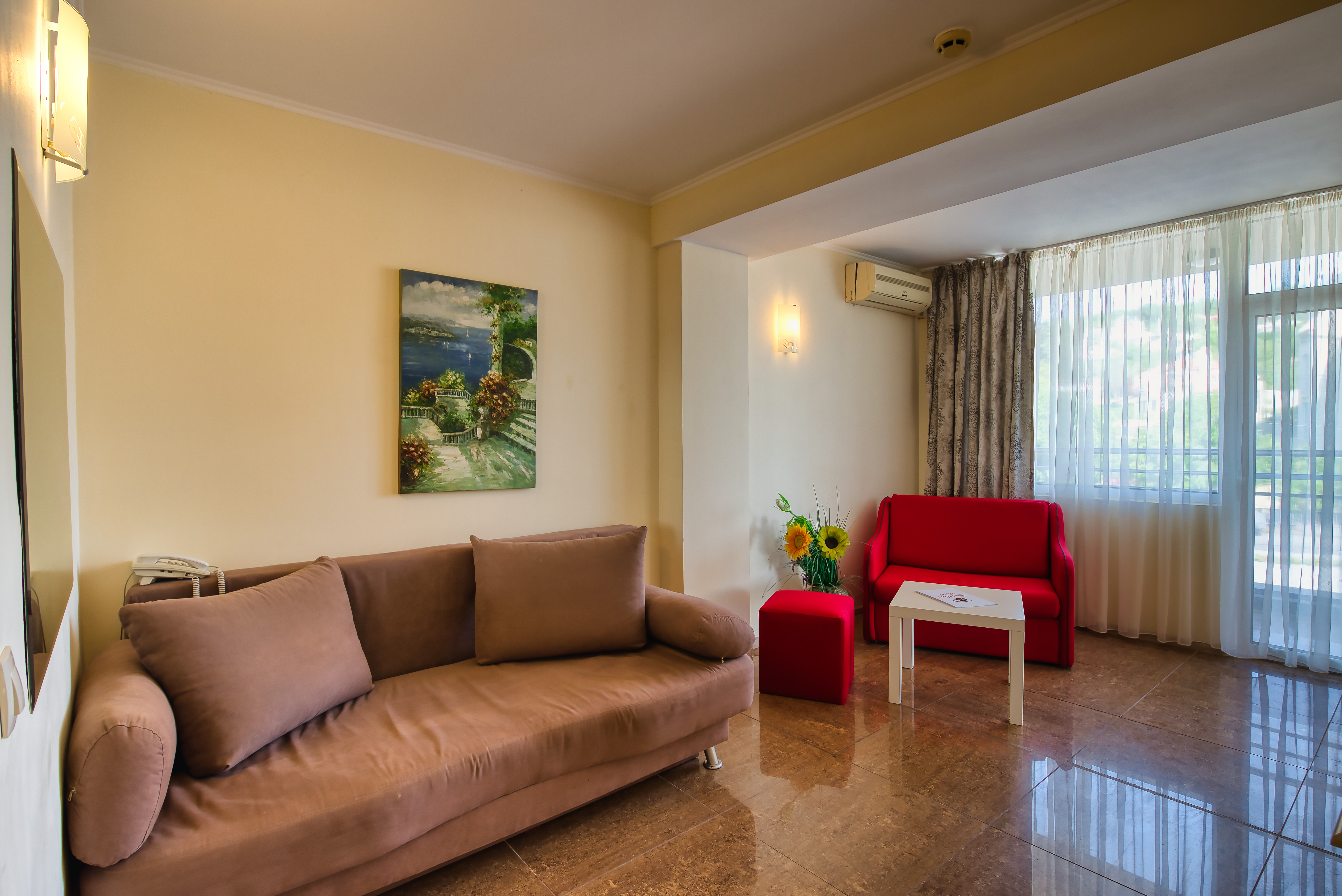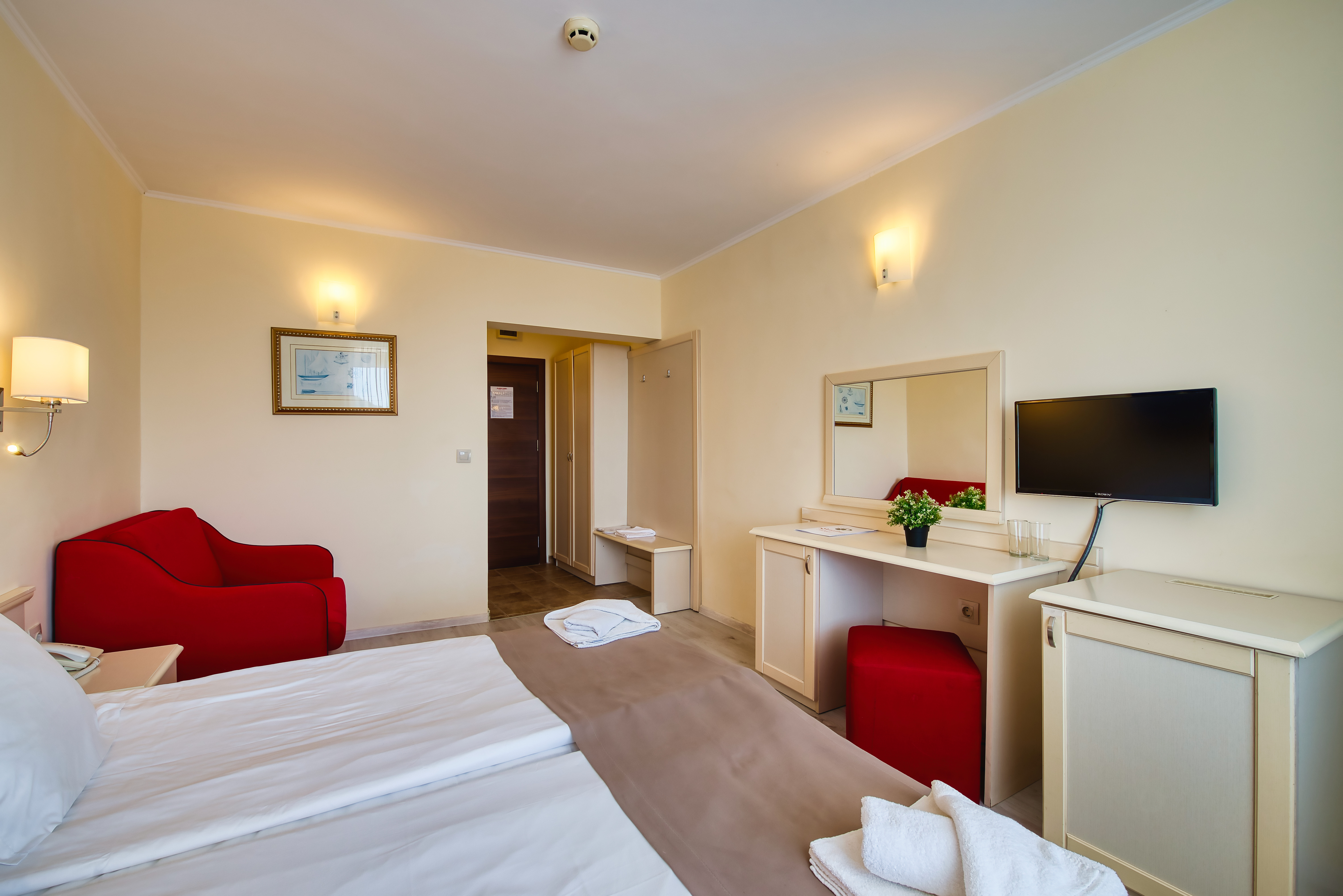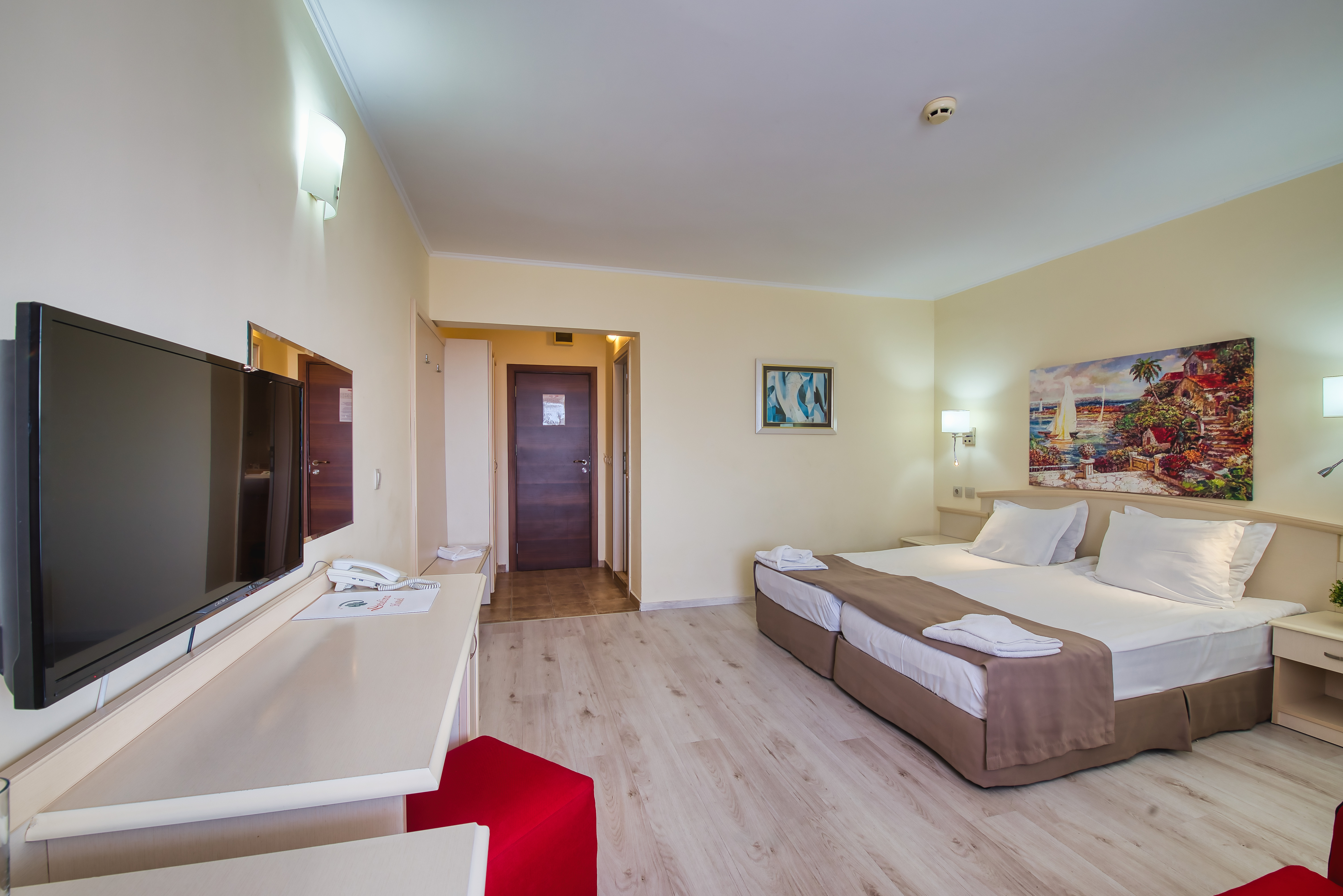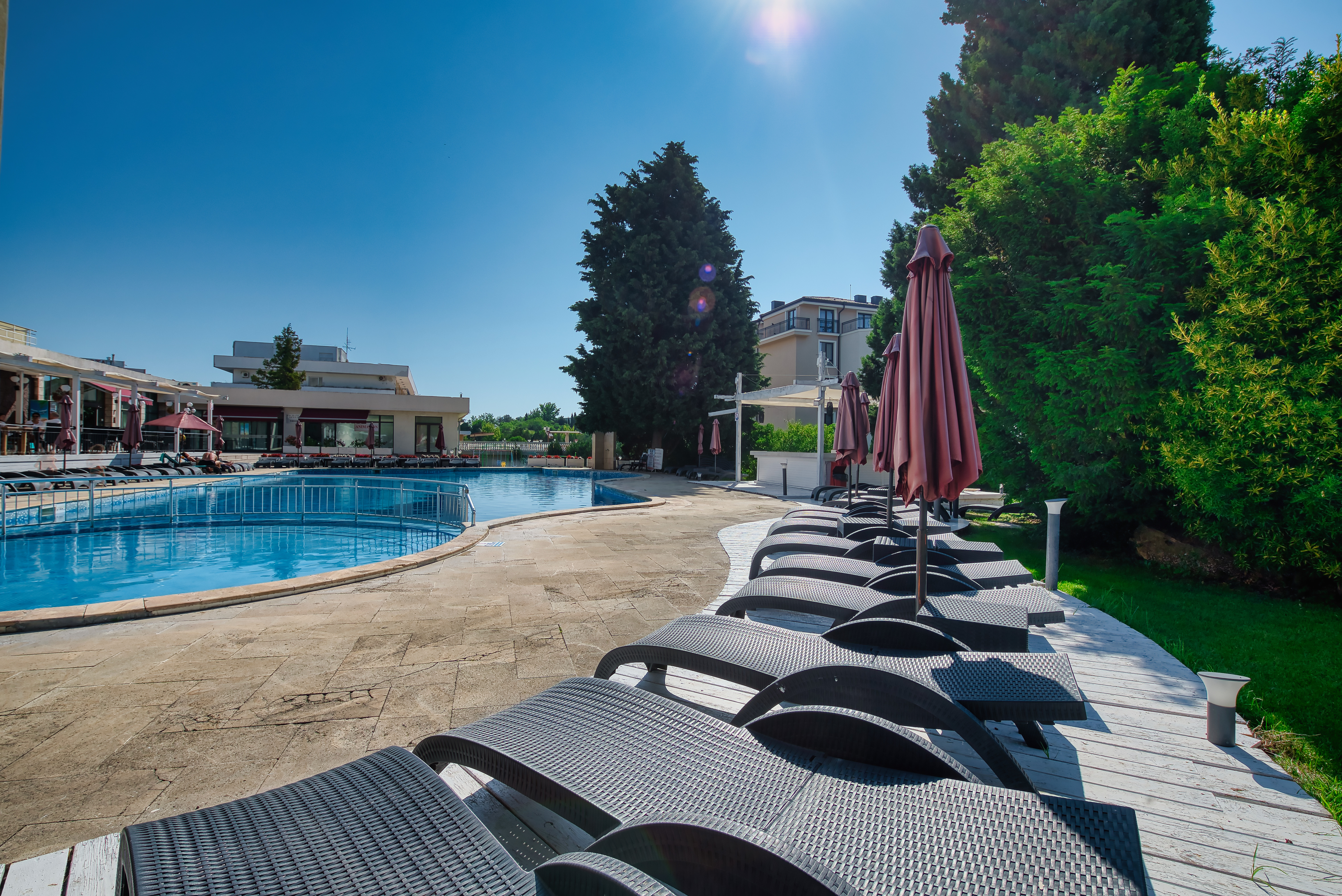 The Detelina is a popular hotel, surrounded by green open spaces and sits enjoying a great location in a quiet area just 300 m from the beach; Golden Sands can be found at around 4 km from the hotel. Guests will be able to find various shopping facilities and entertainment venues within walking distance from the hotel. The comfortable rooms comprise comfortable furnishing and standard amenities. This is a perfect place for budget travellers who wish to spend a few days by the sea.