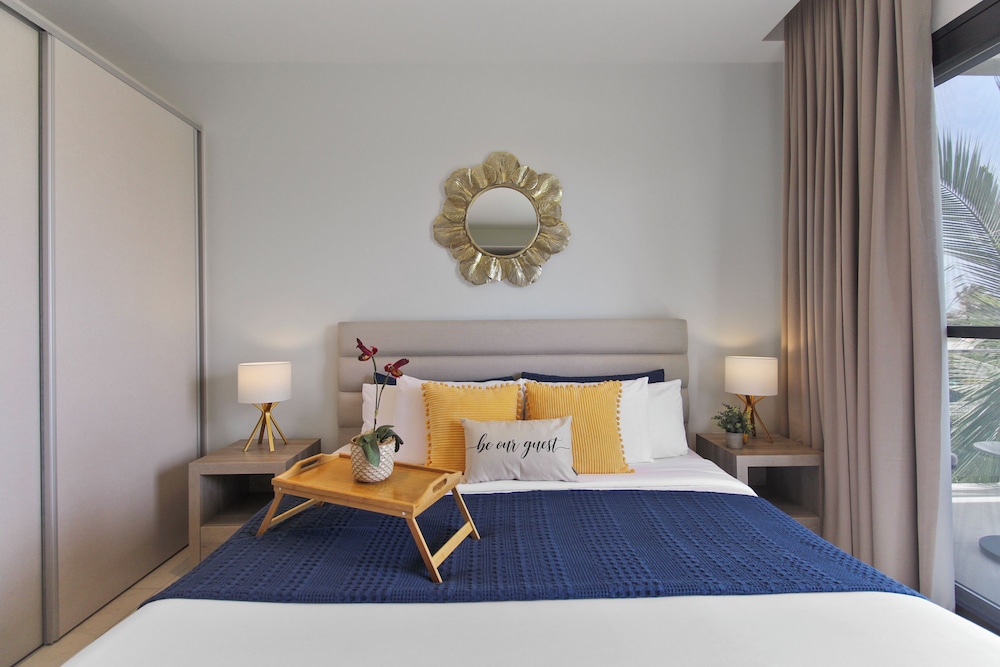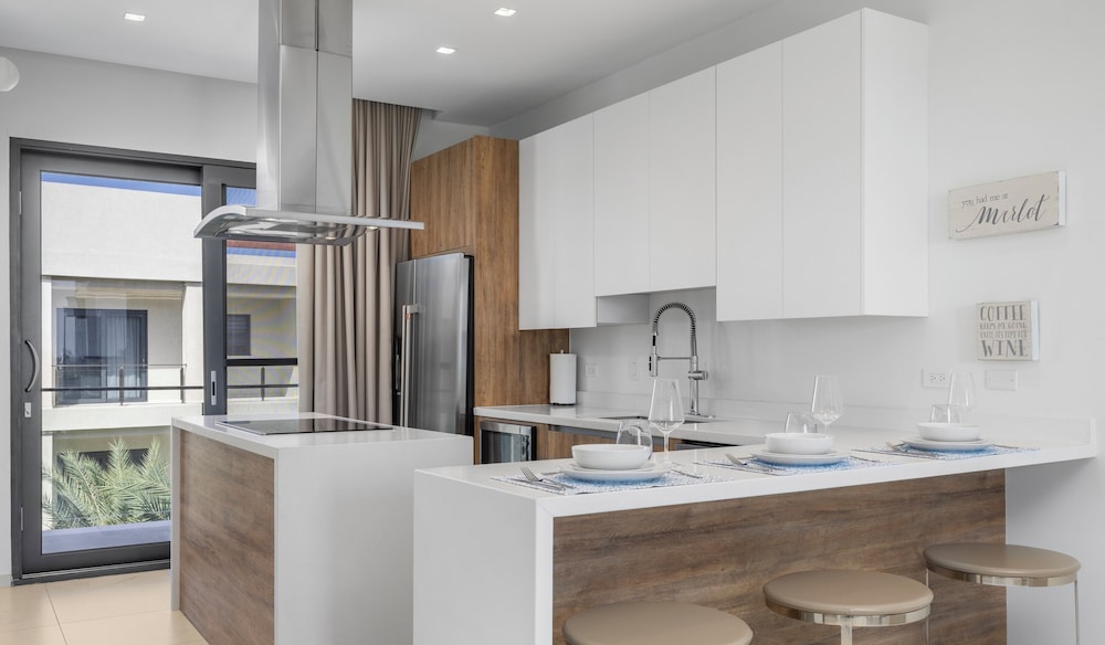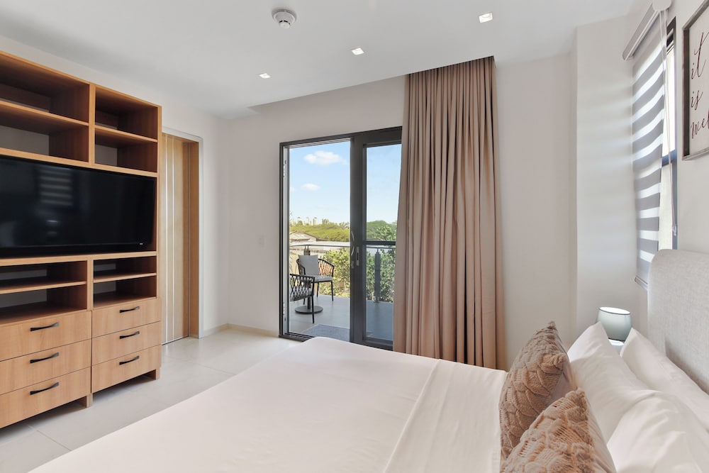 Located in Noord (Malmok), Bocobay Wariruri Condos is within a 5-minute drive of Tierra del Sol Golf Course and Stellaris Casino. This golf condo is 1.3 mi (2.1 km) from Palm Beach and 2 mi (3.1 km) from Hyatt Regency Casino. Make yourself at home in one of the 16 individually decorated guestrooms, featuring kitchens with ovens and microwaves. Rooms have private balconies or patios. 55-inch Smart televisions with digital programming provide entertainment, while complimentary wireless internet access keeps you connected. Conveniences include safes and separate sitting areas, and housekeeping is provided on request. Distances are displayed to the nearest 0.1 mile and kilometer.
