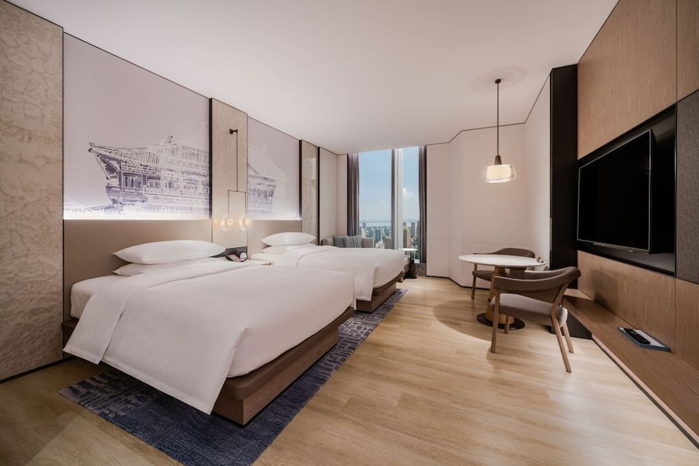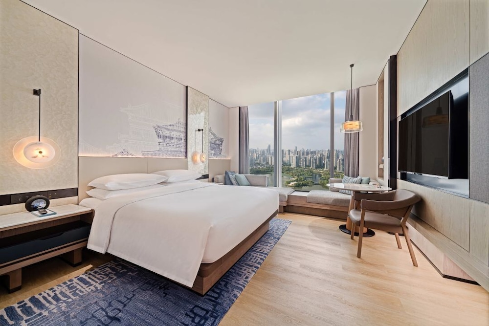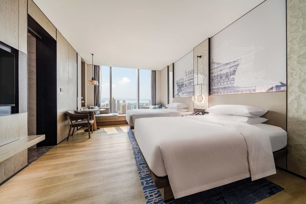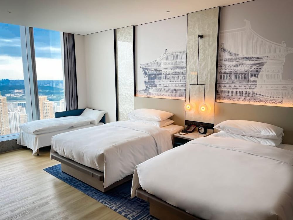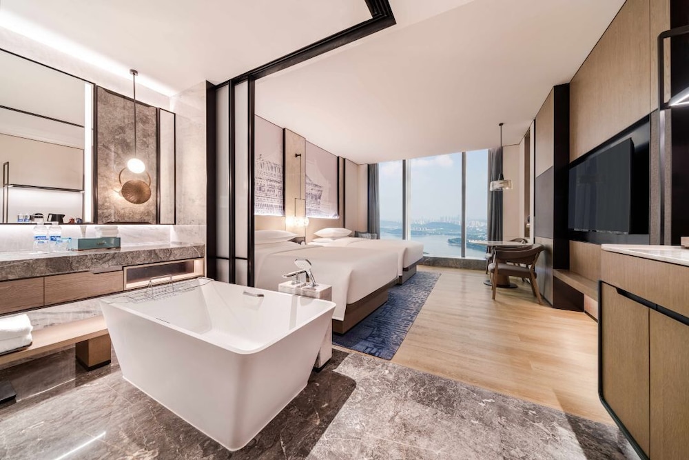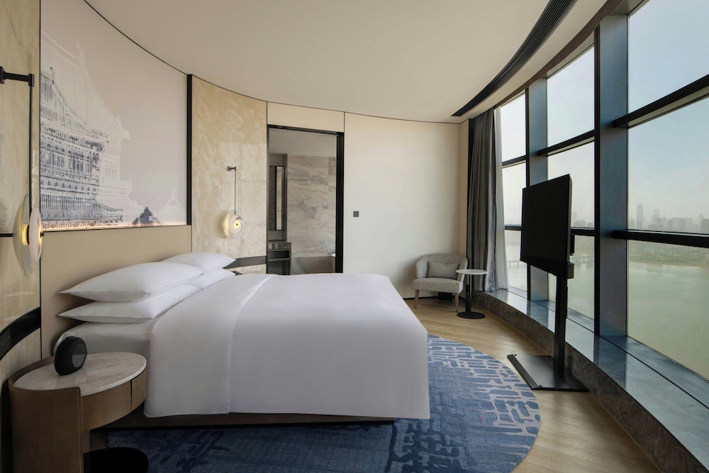 In the heart of Wuhan, Wuhan Marriott Hotel Wuchang is within a 5-minute drive of East Lake and Hubei Provincial Museum. This luxury hotel is 2.7 mi (4.4 km) from Wuhan University and 4.4 mi (7.1 km) from Yellow Crane Tower. Treat yourself to a stay in one of the 301 individually furnished guestrooms, featuring indoor private hot tubs and flat-screen televisions. Your bed comes with down comforters and premium bedding. Complimentary wireless internet access keeps you connected, and cable programming is available for your entertainment. Conveniences include phones, as well as safes and desks. Distances are displayed to the nearest 0.1 mile and kilometer.