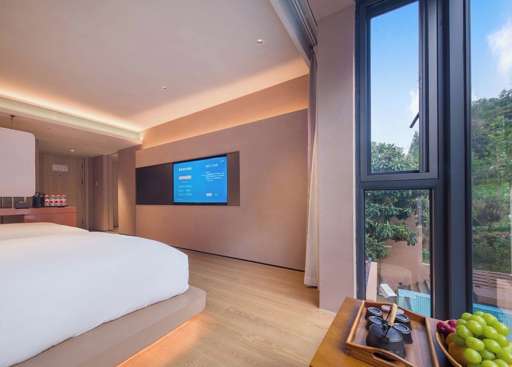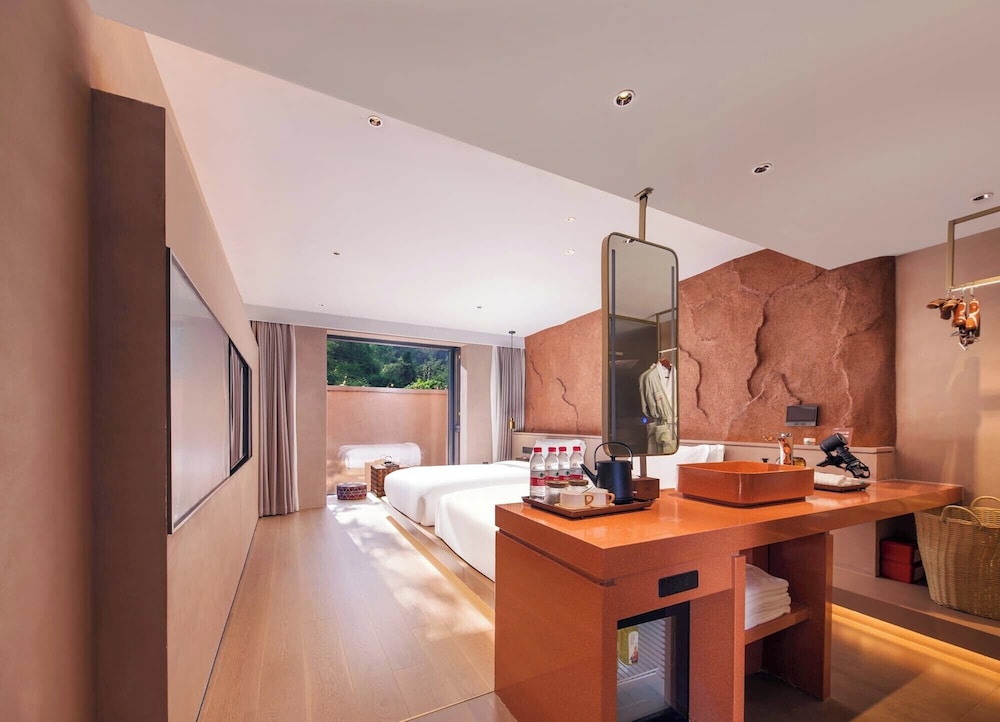 With a stay at Zhangjiajie Shisuji Hotel - Zhangjiajie National Forest Park Avatar Scenic Area Branch in Zhangjiajie (Wulingyuan), you'll be within a 5-minute drive of Charming Xiangxi Grand Theatre and Wulingyuan Scenic Area. This luxury hotel is 27.2 mi (43.8 km) from Zhangjiajie National Forest Park and 2 mi (3.2 km) from Baofenghu Scenic Area. Make yourself at home in one of the 32 air-conditioned rooms featuring minibars. Complimentary wireless internet access is available to keep you connected. Private bathrooms with showers feature rainfall showerheads and complimentary toiletries. Conveniences include phones, as well as safes and desks. Distances are displayed to the nearest 0.1 mile and kilometer.