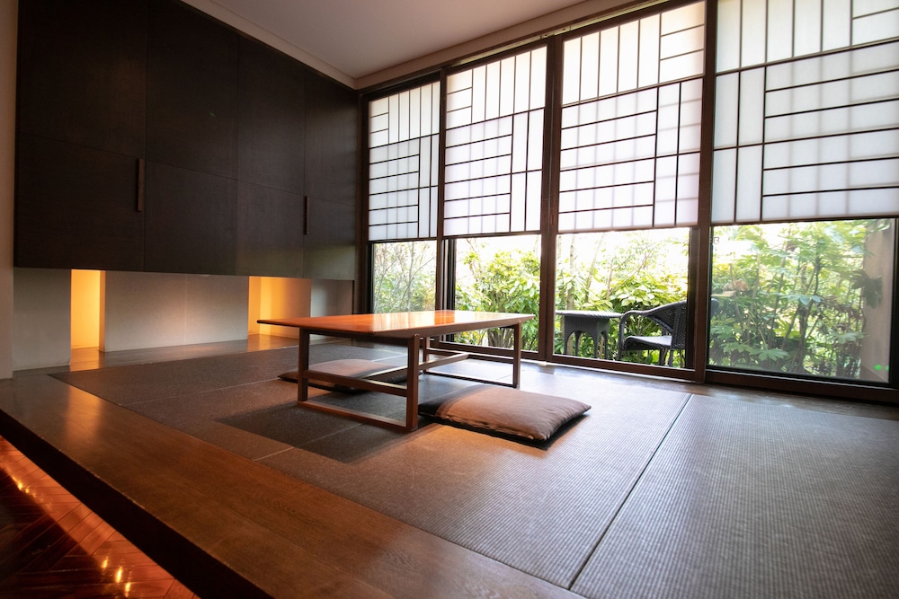 With a stay at Yufuin Bettei Itsuki in Yufu (Yufuin Onsen), you'll be within a 5-minute walk of Sueda Art Gallery and Kyushu Yufuin Folk Village. This luxury ryokan is 10.2 mi (16.5 km) from African Safari and 12.5 mi (20.1 km) from Hells of Beppu. Make yourself at home in one of the 9 individually decorated guestrooms, featuring refrigerators and LCD televisions. Rooms have private balconies. Complimentary wireless internet access keeps you connected, and DVD players are provided for your entertainment. Bathrooms feature separate bathtubs and showers, spring water baths, and complimentary toiletries. Distances are displayed to the nearest 0.1 mile and kilometer.